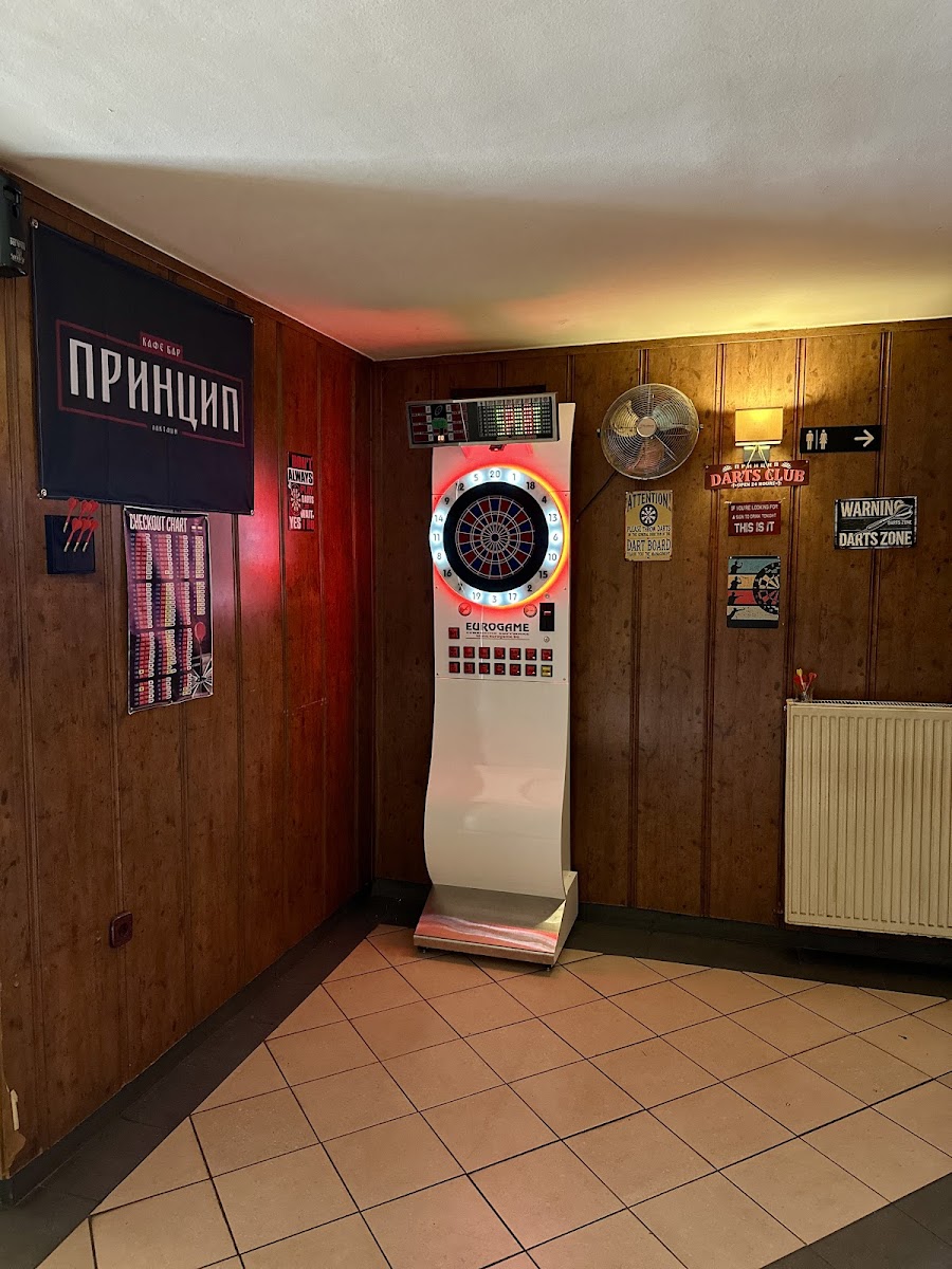As evening falls, Кафе Бар Принцип transforms into a lively social hub, offering a variety of refreshing drinks such as Vitaminka juices for BAM 2.00. The atmosphere is electric, enhanced by a DJ spinning tunes, ensuring a memorable experience.